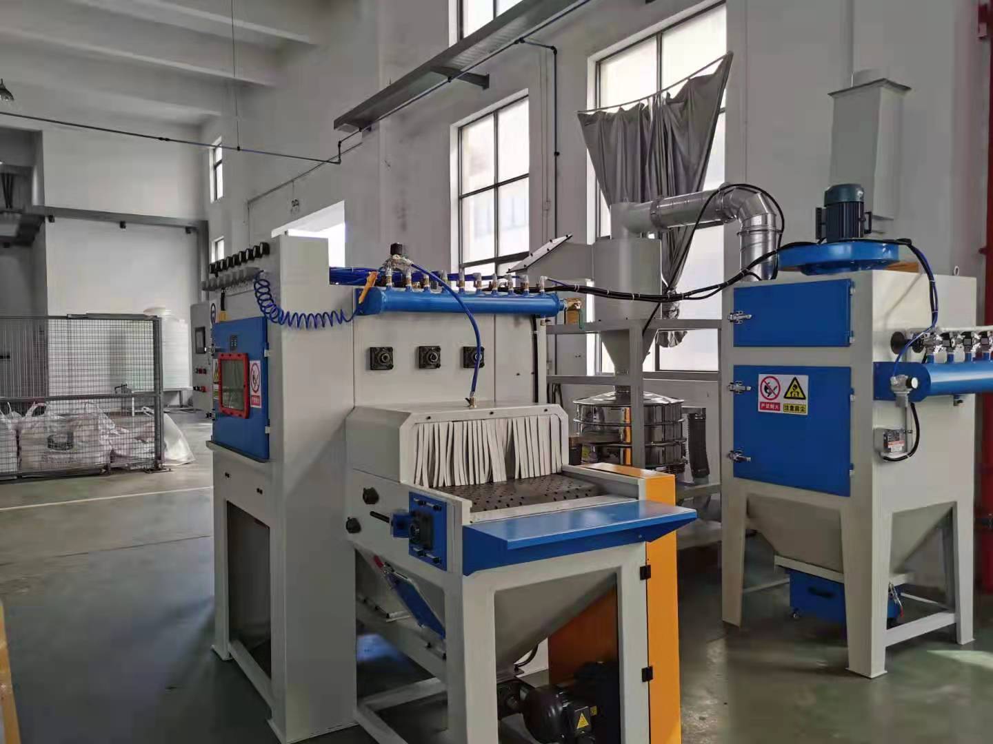 5、 配有大型除塵機(jī)和磨料與粉塵旋風(fēng)分離器,可分離磨料與粉塵,可減少磨料消耗,環(huán)境污染。磨 料可自動(dòng)循環(huán)使用。