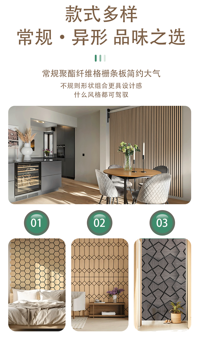 木飾面聚酯纖維多邊形裝飾墻板